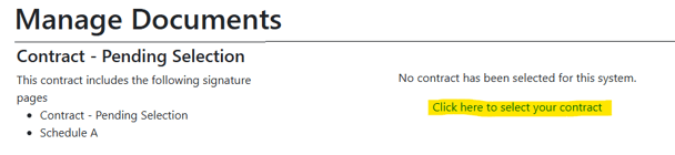 After selecting this button, you will be able to to select your contract option by selecting "Click here to select your contract:. Once the contract is selected, it will be sent to your email in addition to the Schedule A document: